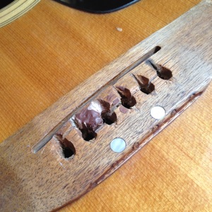 And, you can see the end result in the last image. As it's a nicer piece of rosewood, I think the new bridge actually looks better than the original but, that aside, it's certainly more sound.