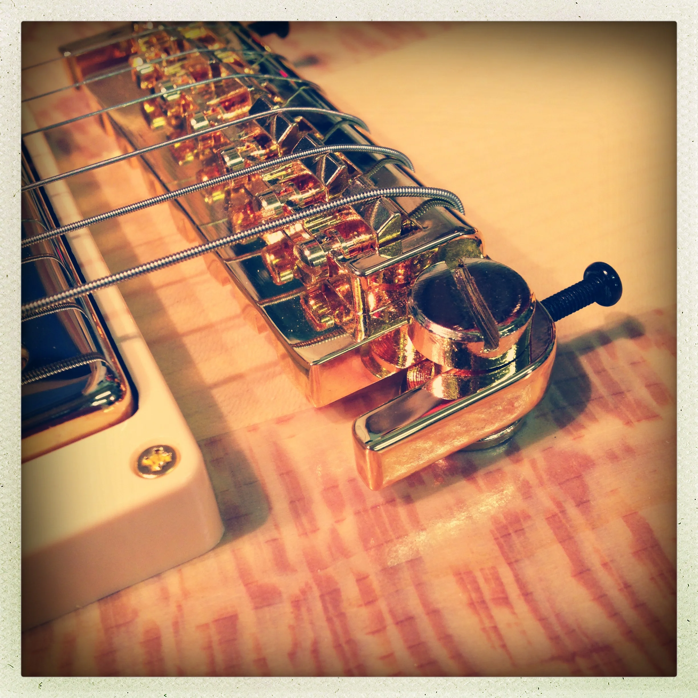 Bringing the bling, the hardware is gold; even the frets are gold. Tasty.